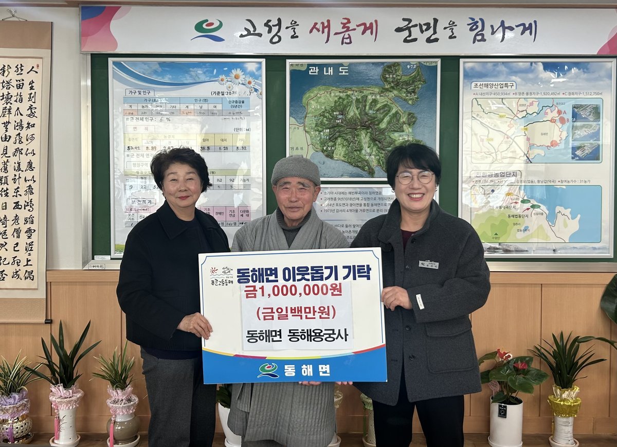 이번에 기탁된 성금은 동해용궁사가 지역사회와 상생하고 나눔을 실천하기 위한 뜻에서 마련한 것으로, 동해면 관내 저소득층 및 복지 사각지대에 놓인 이웃들을 위해 사용될 예정이다.