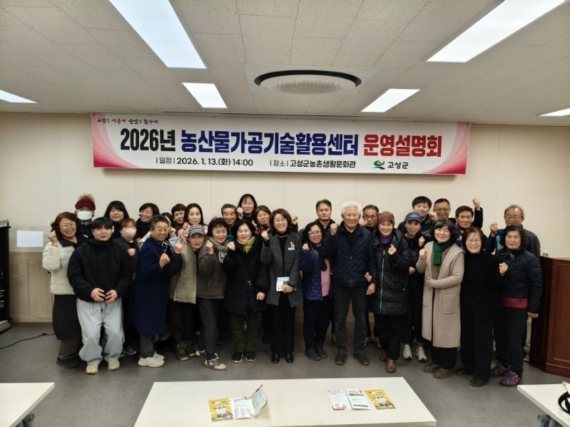 [아시아월드뉴스] 고성군은 1월 13일, 농업기술센터에서 농산물가공지원센터 이용 농업인과 로컬푸드 생산자단체, 농산물가공창업아카데미 수료생 등 농산물 가공에 관심 있는 농업인을 대상으로 ‘농산물가공기술활용센터 운영설명회’를 개최했다.