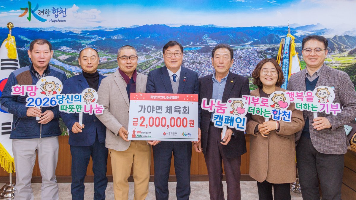 한편, 합천군은 2025년 12월 1일부터 2026년 1월 31일까지 희망2026나눔캠페인 이웃돕기 성금 집중 모금 기간을 운영하고 있으며 기탁받은 성금은 경남사회복지공동모금회를 통해 가야면 관내 어려운 이웃에 지원할 계획이다.