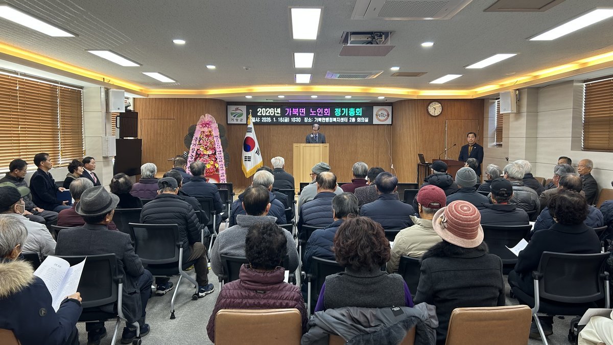 총회는 노인강령 낭독을 시작으로 △2025년도 결산 및 감사보고 △2026년도 예산안 심의 △임원 선출 △기타 건의사항 논의 순으로 진행됐으며 참석자들은 2026년 가북면 노인회의 새 출발을 다짐했다.