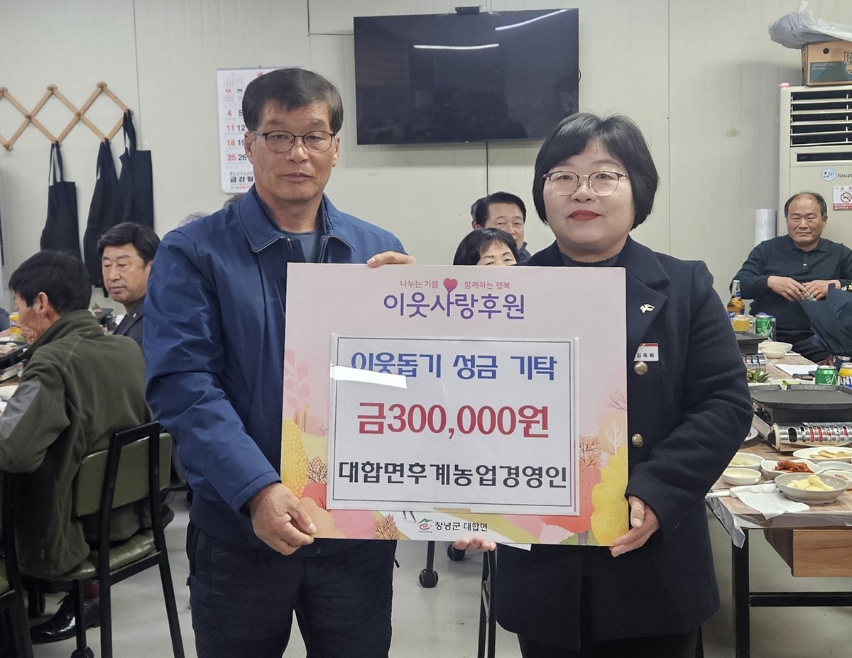 김옥화 면장은 "나눔 문화에 동참해 주신 대합면 농업경영인 단체에 깊이 감사드린다"며 "기탁해 주신 성금은 꼭 필요한 곳에 소중히 전달해 뜻을 전하겠다"고 말했다.