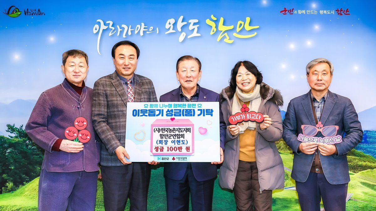 [아시아월드뉴스] 함안군은 지난 19일 한국농촌지도자회 함안군연합회가 '희망 2026 나눔 캠페인'에 참여해 지역 내 취약계층 지원을 위한 성금 100만원을 기탁했다고 밝혔다.