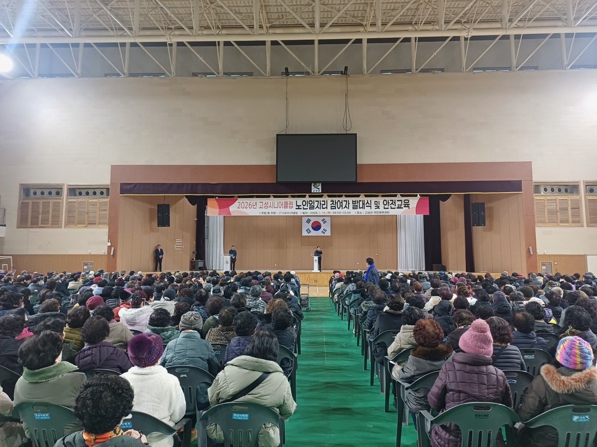 [아시아월드뉴스] 고성시니어클럽은 1월 15일 국민체육센터에서 2026년도 노인일자리사업 참여자 약 700여명을 대상으로 발대식과 함께 안전교육을 실시했다.