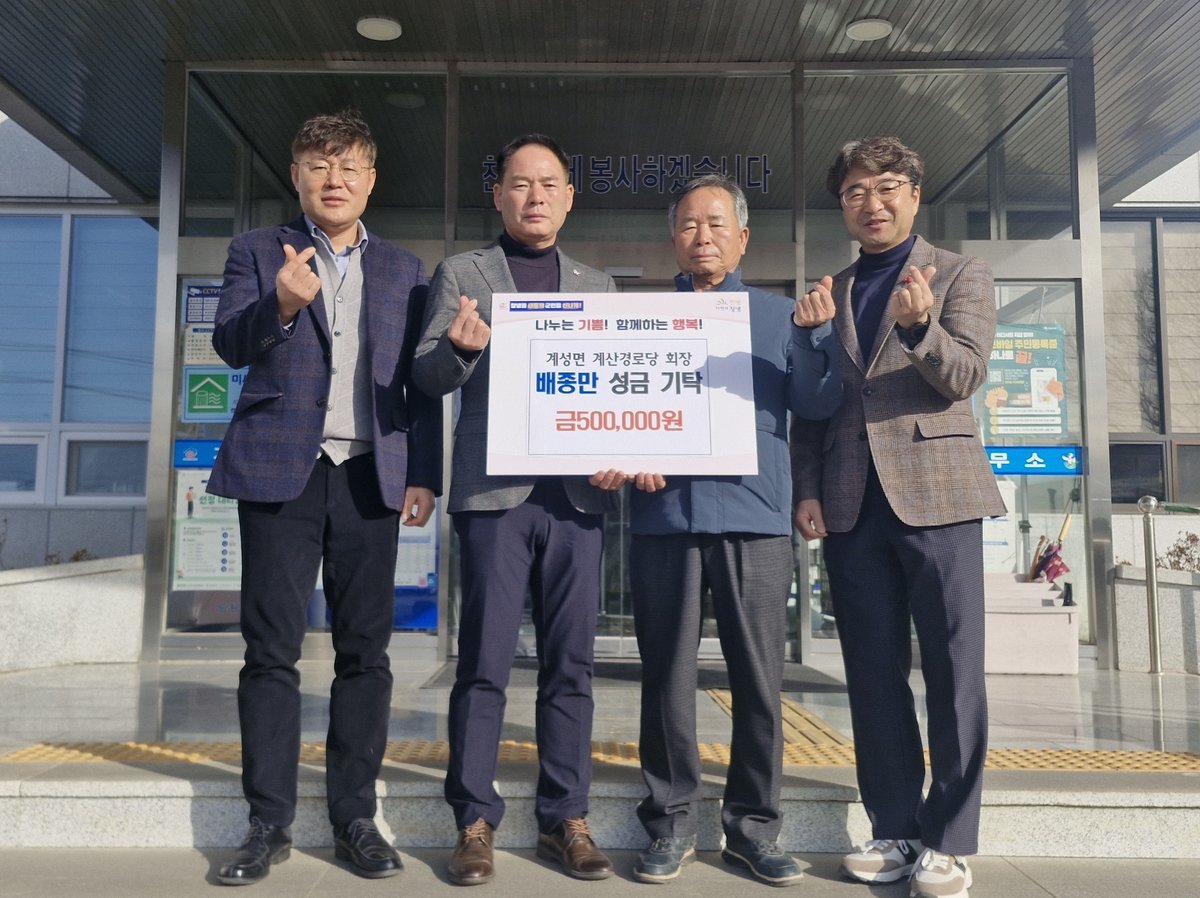 [아시아월드뉴스] 창녕군 계성면은 20일 계산경로당 배종만 회장이 새해를 맞아 관내 어려운 이웃을 위해 사용해 달라며 성금 50만원을 기탁했다고 밝혔다.