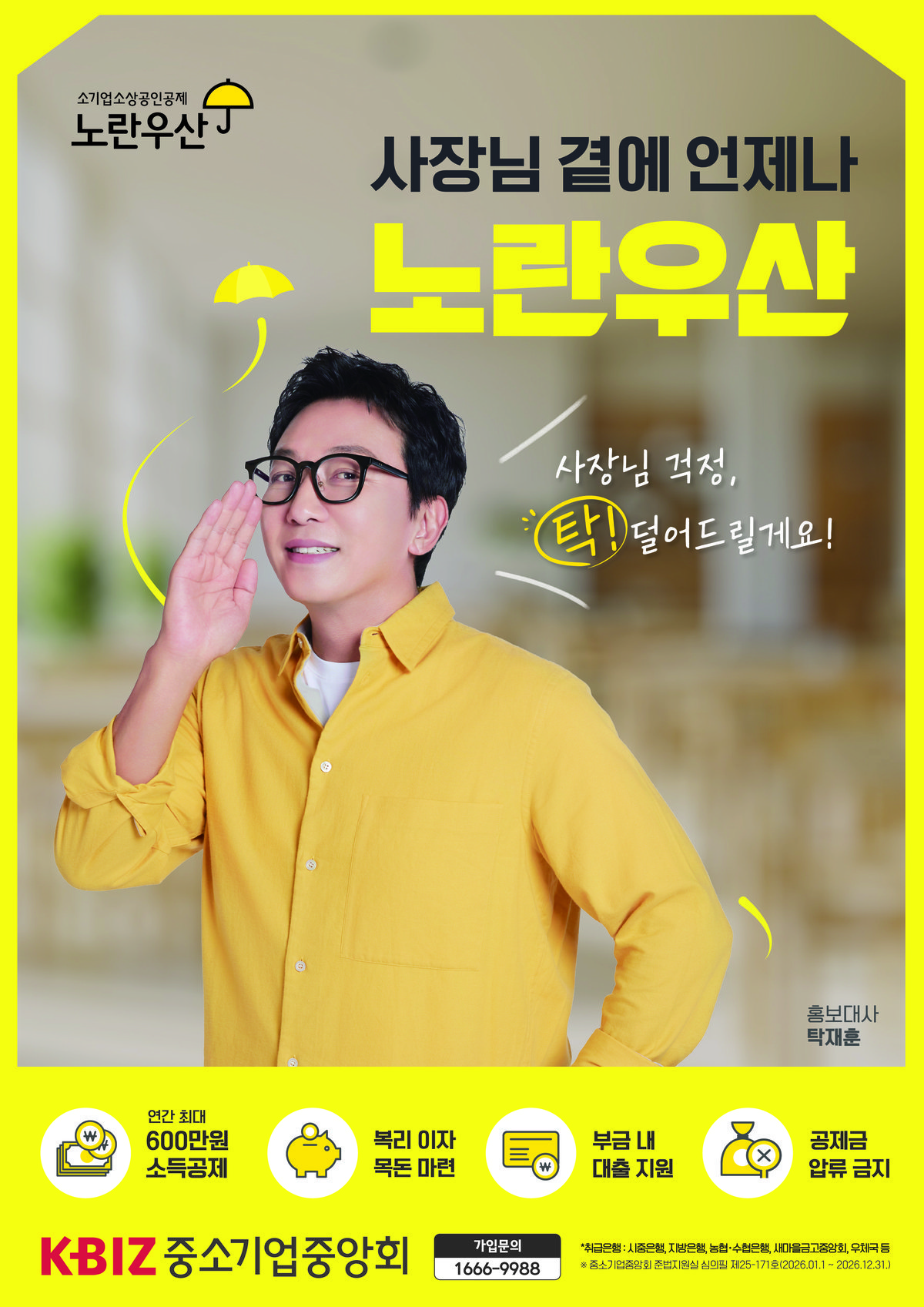 노란우산은 폐업이나 노령 등 공제 사유 발생 시 그동안 납입한 부금에 이자를 더해 지급 받을 수 있는 제도로, 사실상 소상공인의 퇴직금 역할을 한다. 또한 △연간 최대 600만 원 소득공제 △공제금 수급권 보호(압류·양도·담보제공 금지) 등 다양한 혜택을 제공하고 있다.