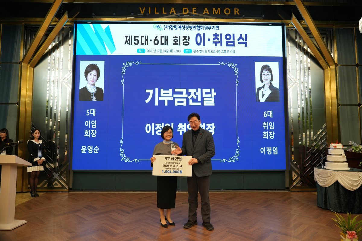 이날 이·취임식에는 원강수 시장과 이정임 신임회장, 윤영순 이임회장 등이 참석했다.