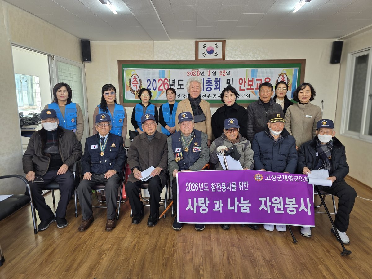 [아시아월드뉴스] 고성군은 6.25참전유공자회 고성군지회가 1월 22일 6.25참전유공자회 사무실에서 2026년 정기총회를 개최해 지난 한 해의 활동을 돌아보며 향후 운영 방향을 논의했다고 밝혔다.