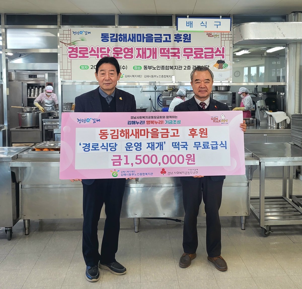 [아시아월드뉴스] 김해시복지재단 김해시동부노인종합복지관에서는 지난 21일 동김해새마을금고는 경로식당 운영 재개 떡국 무료급식 후원 150만원 전달식을 개최했다.