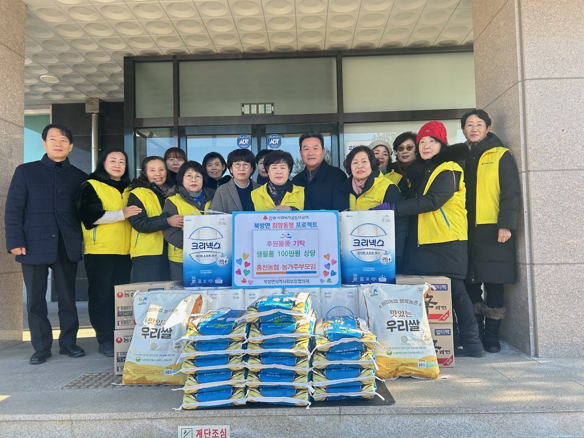 [아시아월드뉴스] 홍천 농협 농가주부모임는 1월 22일 북방면 행정복지센터를 방문해, 북방면 취약계층을 위해 라면, 쌀, 휴지 등 생활에 꼭 필요한 생필품으로 꾸려진 100만원 상당의 후원 물품을 기탁했다.