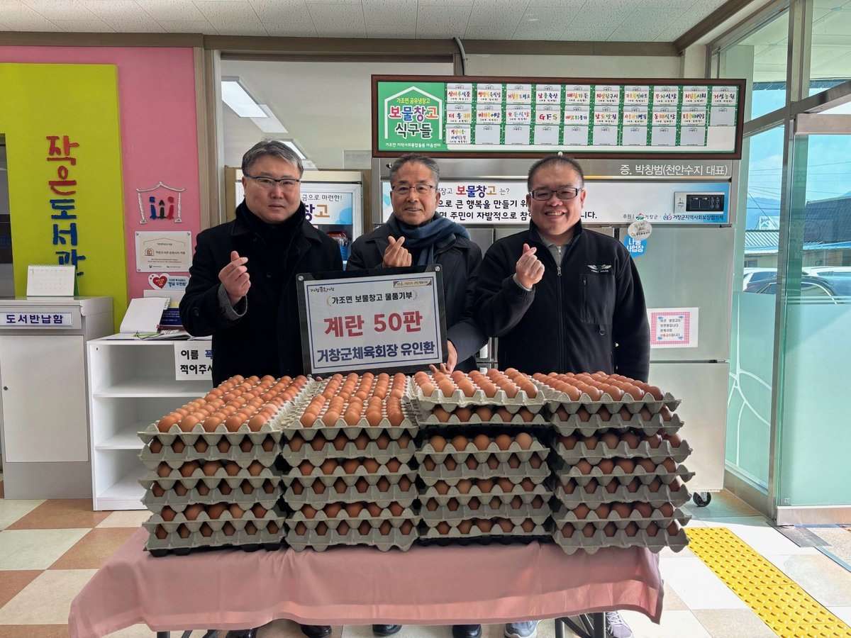 이번 기부는 겨울철 추위로 어려움을 겪고 있는 이웃들을 돕기 위해 마련됐으며 기부된 달걀은 가조면 공유냉장고 '보물창고'를 통해 기초생활수급자, 차상위 계층 등 도움이 필요한 주민들에게 전달될 예정이다.