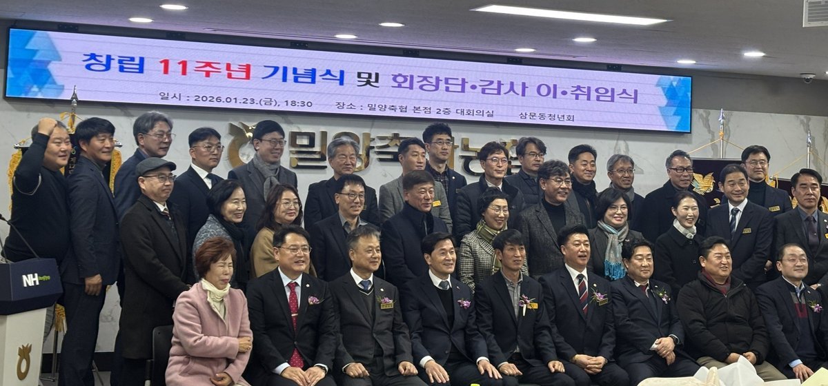 [아시아월드뉴스] 밀양시 삼문동 청년회는 지난 23일 밀양축협 대회의실에서 창립 11주년 기념식 및 회장단 이·취임식을 개최했다.