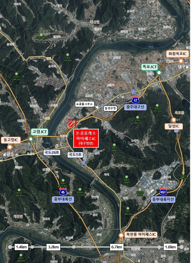 [아시아월드뉴스] 달성군 논공읍 주민들이 그동안 고속도로를 이용하기 위해 인근 시·군까지 이동해야 했던 불편이 해소된다. 국토교통부는 광주-대구 고속도로 논공휴게소에 일방향 하이패스IC*를 신설하는 고속도로 연결허가를 승인했다.