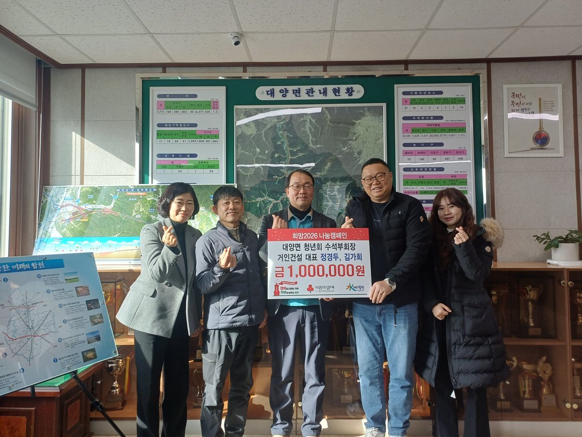 이번 성금 기탁은 2025년 12월 대양면 청년회장의 이웃돕기 성금 기탁에 이어 청년회 임원진의 자발적인 나눔 실천이 지속적으로 이어지고 있다는 점에서 의미를 더하고 있다.
