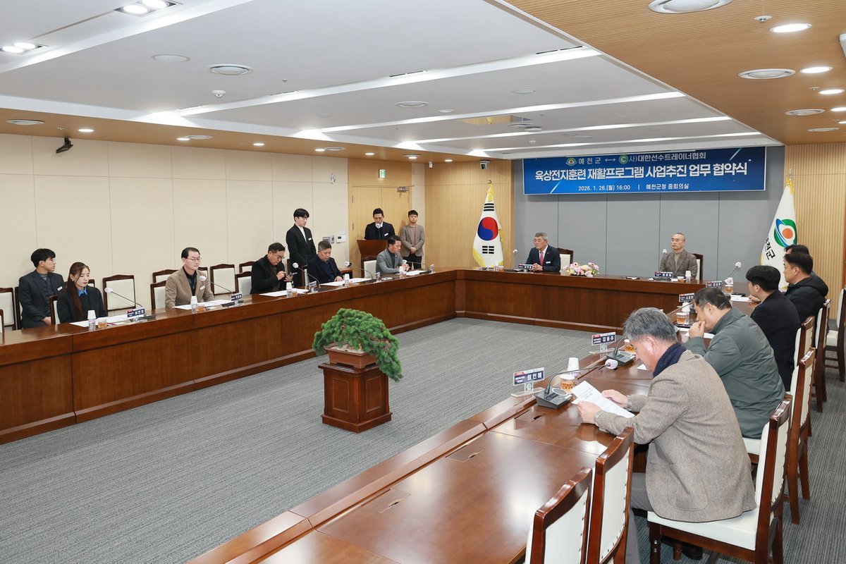 [아시아월드뉴스] 예천군은 26일 오후 4시 군청 중회의실에서 대한선수트레이너협회와 ‘육상전지훈련 재활프로그램 사업추진을 위한 업무협약’을 체결했다고 밝혔다.