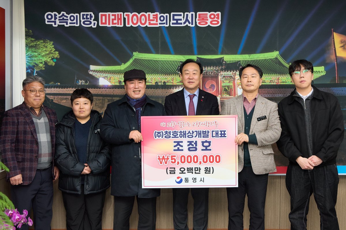 [아시아월드뉴스] ㈜청호해상개발 조정호 대표가 지난 26일 통영시를 찾아 고향사랑기부금 500만원을 기탁했다.