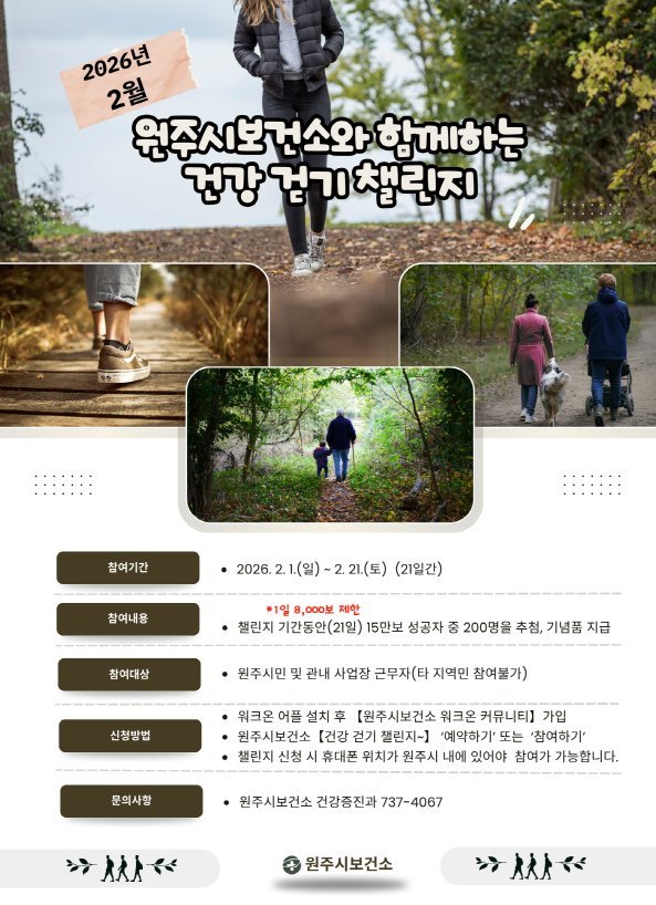 이번 챌린지는 2월 1일부터 21일까지 진행되며 원주시민 누구나 참여할 수 있다.