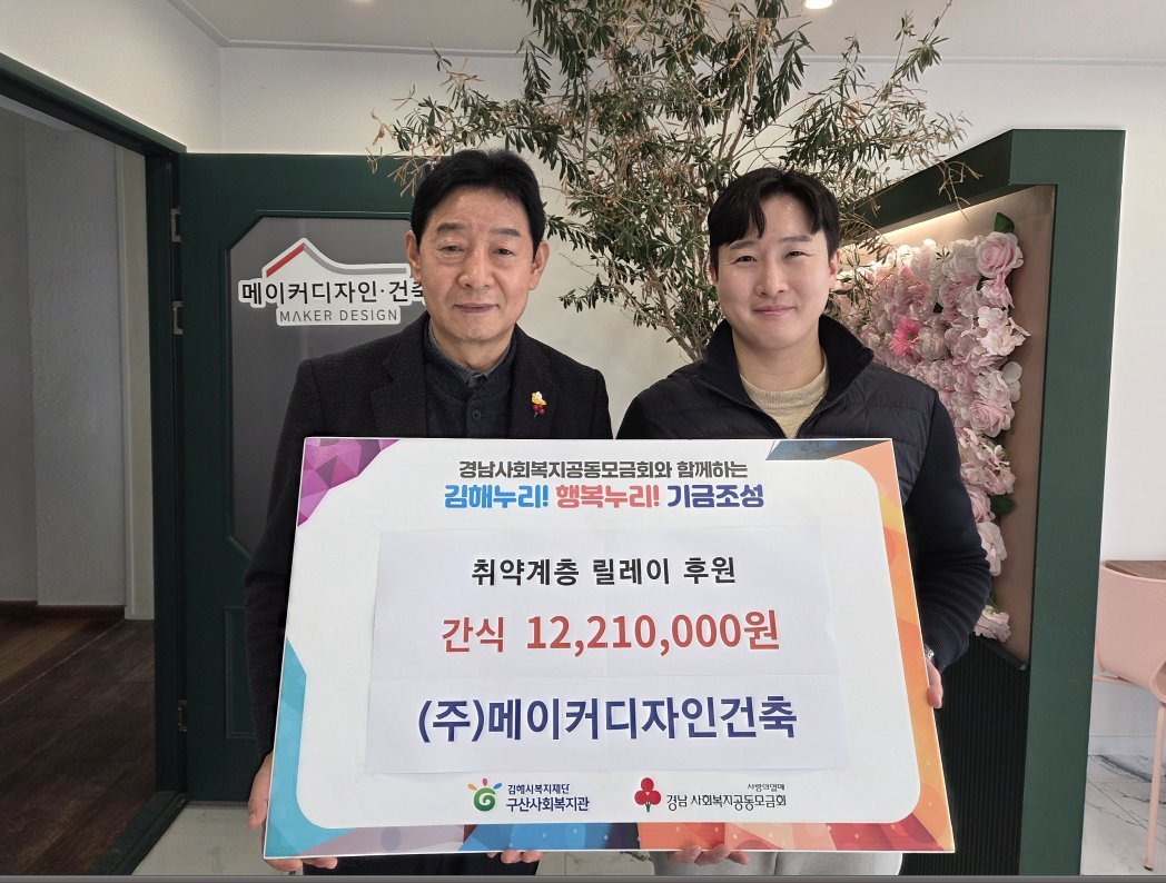 [아시아월드뉴스] 김해시복지재단 구산사회복지관은 지난 26일 지역사회 나눔을 실천해 온 ㈜메이커디자인건축 문정민 대표에게 감사의 뜻을 전하는 전달식을 가졌다고 밝혔다.