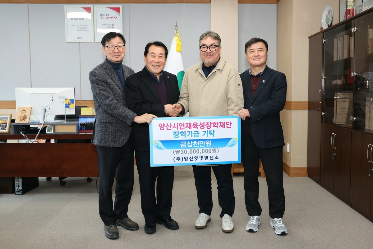 [아시아월드뉴스] 양산시인재육성장학재단은 28일 양산햇빛발전소가 장학재단에 장학금 3000만원을 기탁했다고 밝혔다.