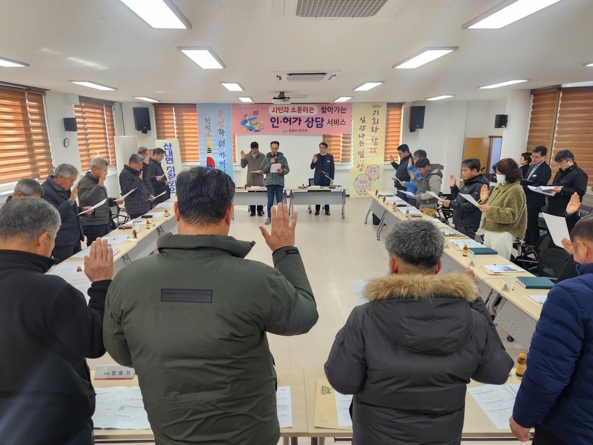 [아시아월드뉴스] 밀양시 산내면 이장협의회는 28일 열린 이장 회의에서 지역 주민과 행정을 잇는 핵심 역할을 수행하는 이장의 책임성과 공공성을 강화하기 위해 '산내면 이장 행동강령'을 제정했다.