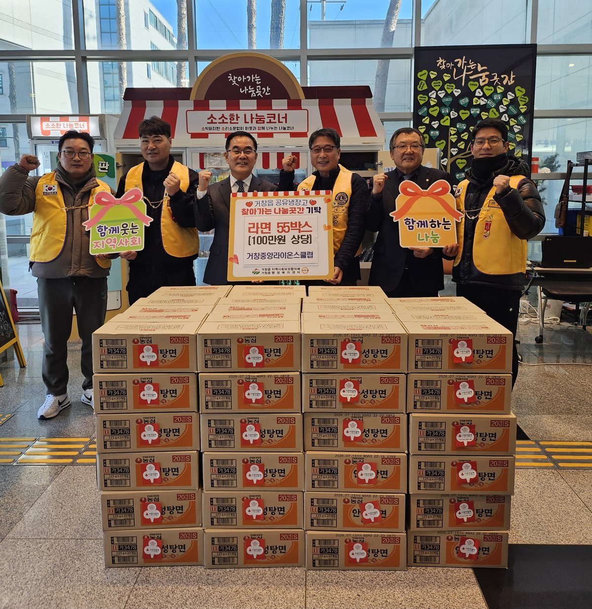 [아시아월드뉴스] 거창군 거창읍은 지난 28일 거창중앙라이온스클럽에서 거창읍 '찾아가는 나눔곳간'공유냉장고에 100만원 상당의 라면 55박스를 기탁했다고 밝혔다.