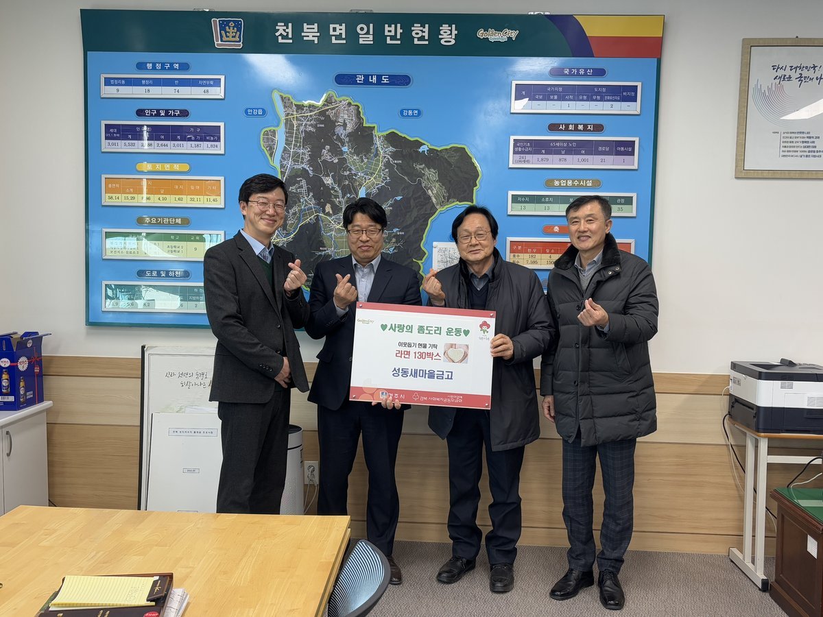 [아시아월드뉴스] 성동새마을금고에서 2026년 1월 28일 천북면에 거주하는 저소득층 이웃을 위해 천북면행정복지센터에 라면 130박스를 기탁했다.
