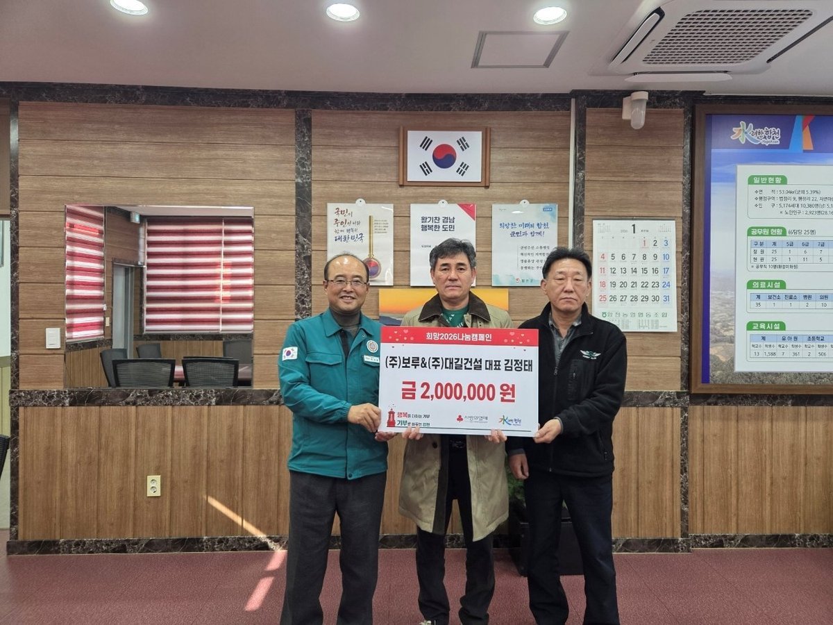 박재홍 합천읍장은 "후원을 해주신 김정태 대표님께 진심으로 감사드리며 성금은 도움이 필요한 곳에 소중하게 전달하겠다"말했다.