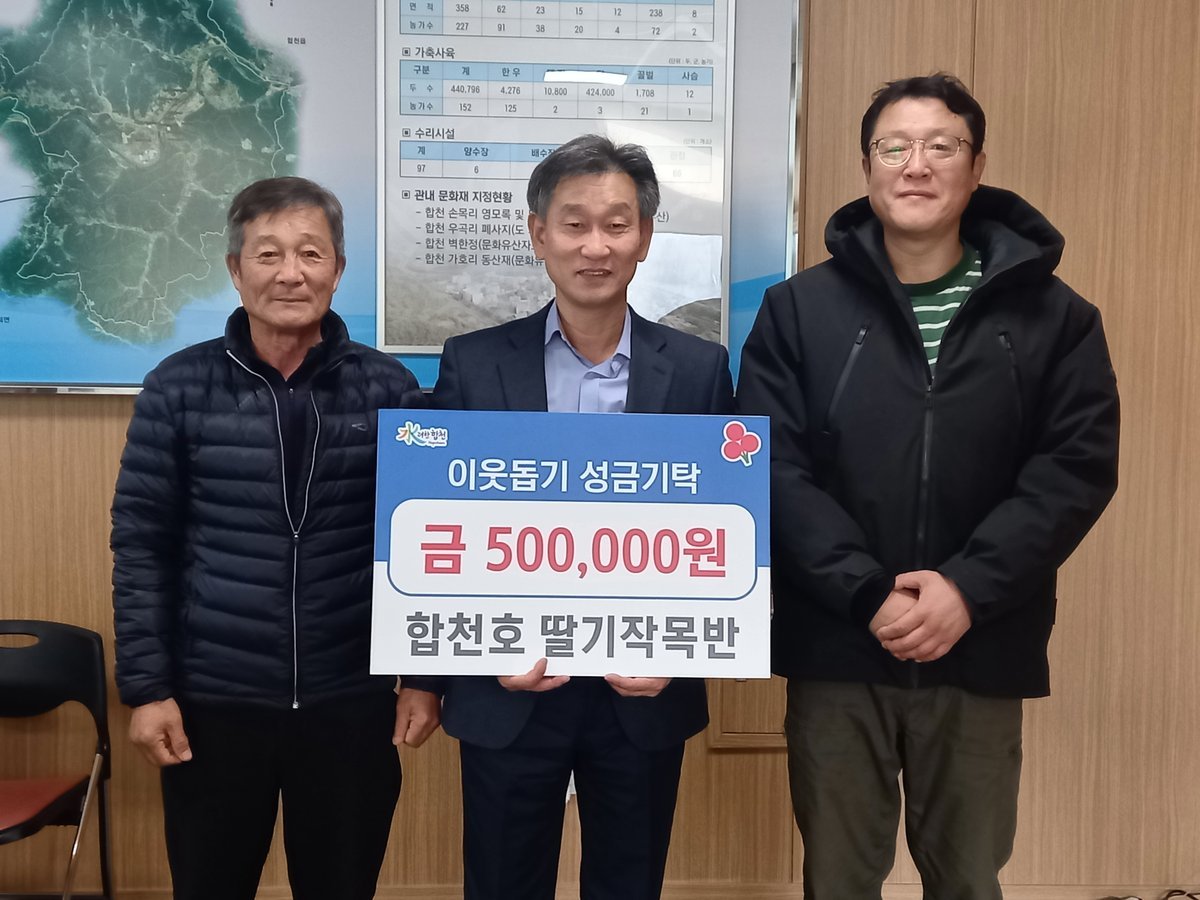 [아시아월드뉴스] 합천호 딸기작목반은 29일 이웃돕기 성금50만원을 용주면에 기탁했다.