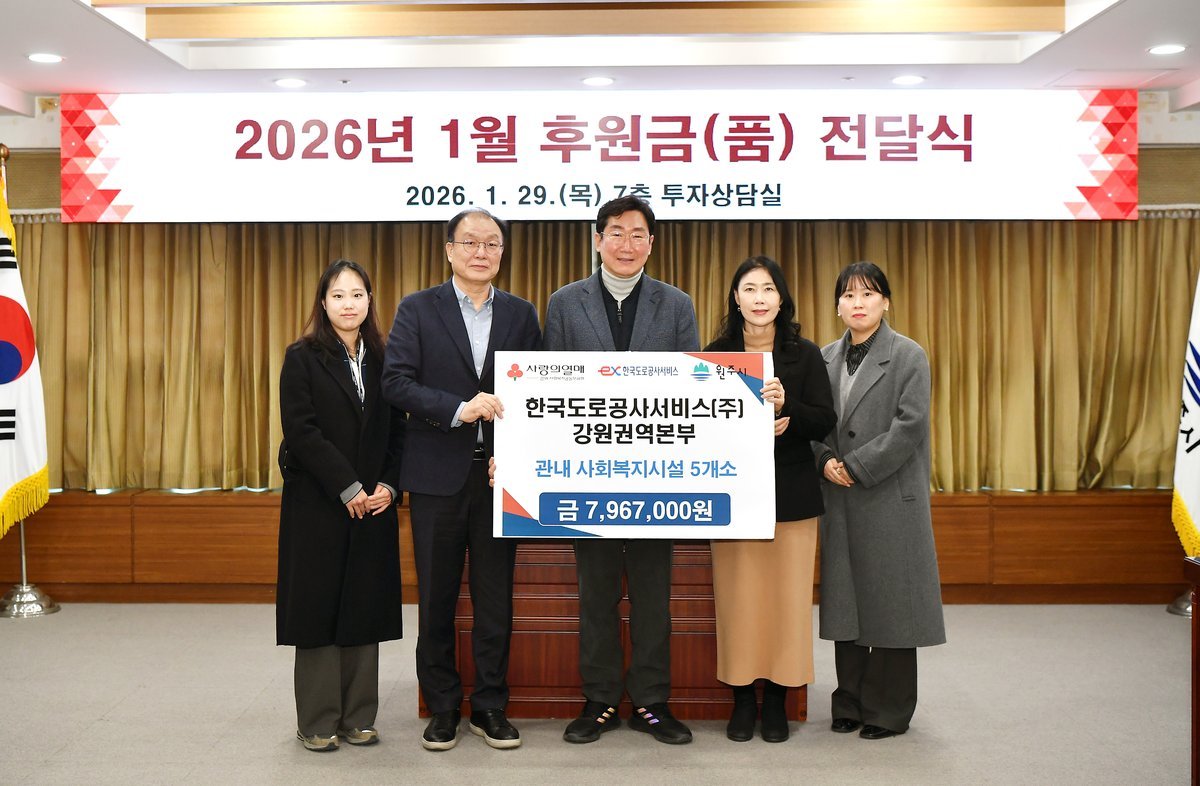 [아시아월드뉴스] 한국도로공사서비스㈜ 강원권역본부는 지난 29일 원주시청을 방문해 원주시 사회복지시설 5곳에 지정기탁 후원금 796만 7000원을 전달했다.