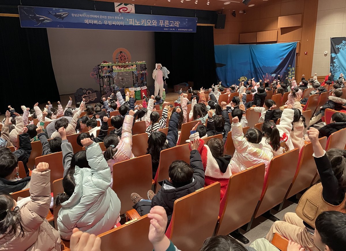 [아시아월드뉴스] 창녕군육아지원센터는 29일 창녕문화예술회관 소공연장에서 관내 영유아와 보호자 300여명을 대상으로 메타버스 무빙씨어터 '피노키오와 푸른 고래'공연을 두 차례에 걸쳐 성공적으로 개최했다.