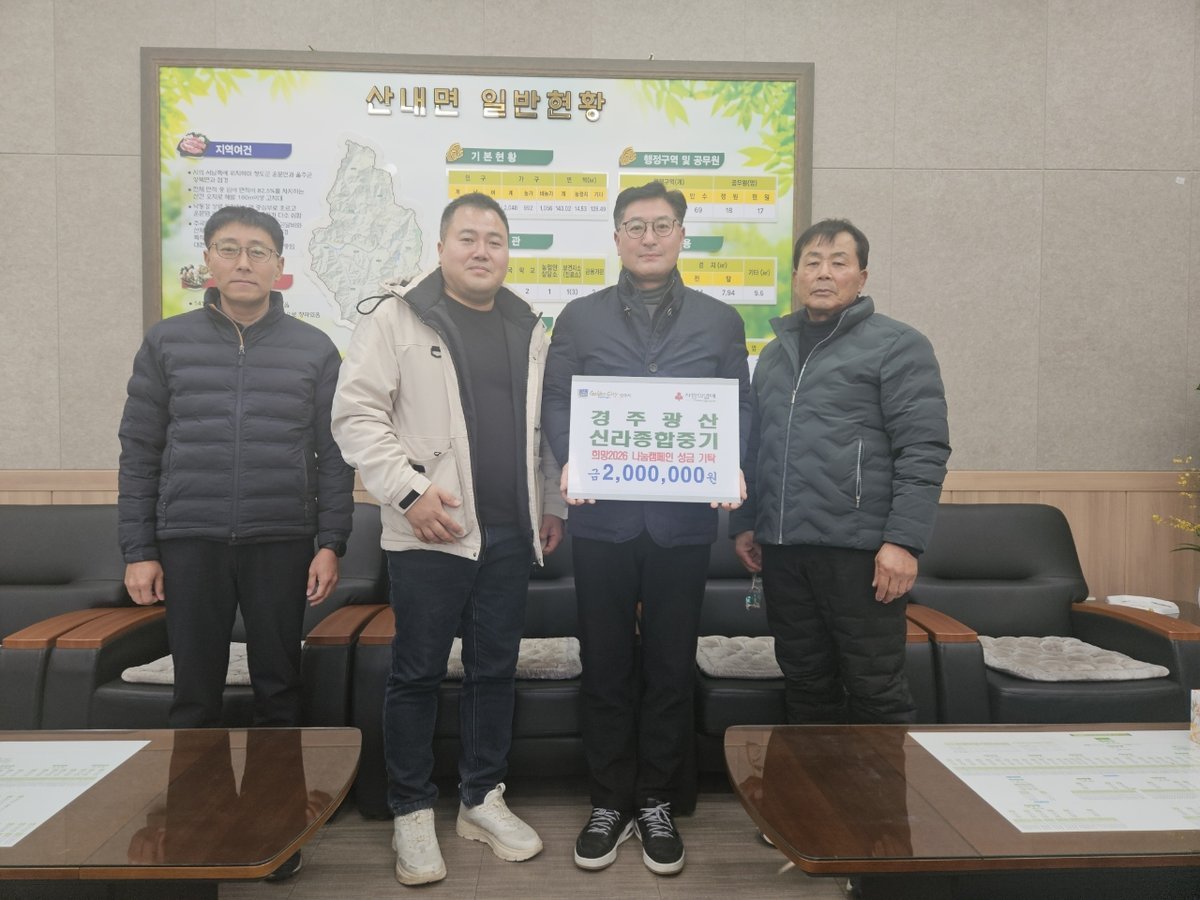 경주시 산내면행정복지센터는 지난 28일 산내면에 위치한 경주광산과 신라종합중기에서 이웃돕기 성금 200만원을 기탁했다고 밝혔다.