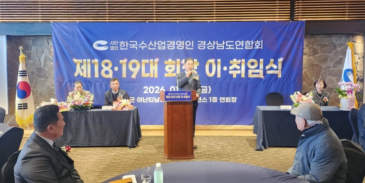 [아시아월드뉴스] 경상남도는 30일 아난티 남해에서 열린 ‘한국수산업경영인 경상남도연합회 회장 이·취임식’에 참석해 수산업경영인들의 노고를 격려하고, 이임 회장에게 감사의 마음을 전하고 신임 회장 취임을 축하했다고 밝혔다.