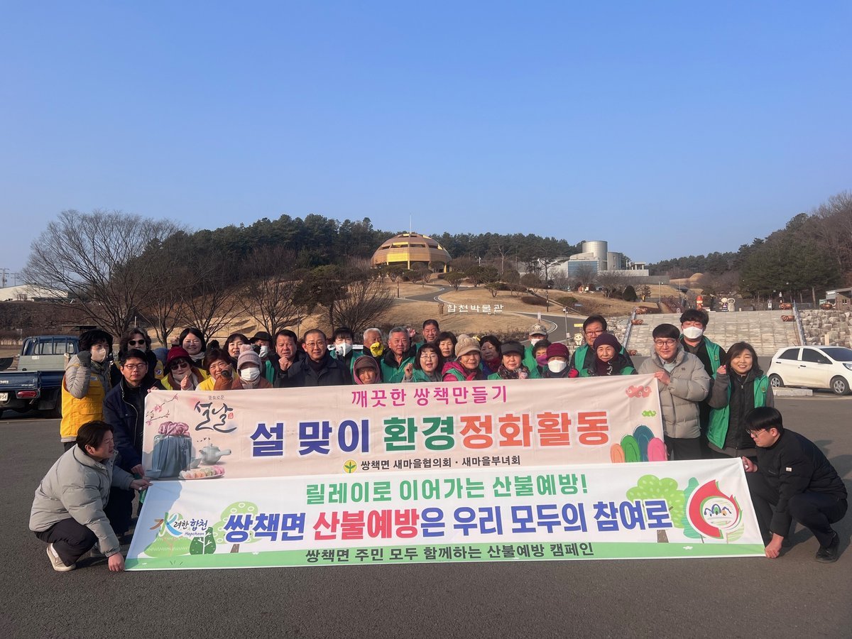 [아시아월드뉴스] 합천군 쌍책면 새마을협의회·부녀회와 적십자회 회원들은 29일 설 명절을 앞두고 쾌적하고 깨끗한 마을환경 조성을 위해 회원 30여명이 참여한 가운데 관내 도로변 대청소와 산불 예방 홍보 캠페인을 실시했다.