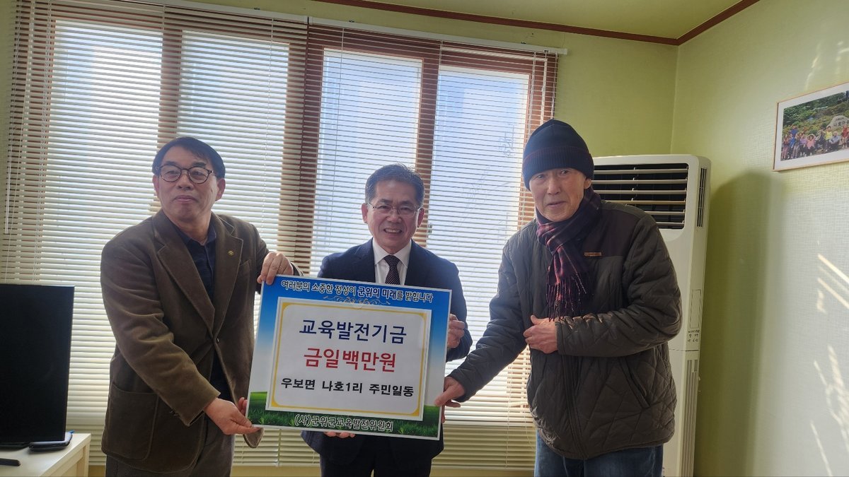 [아시아월드뉴스] 대구 군위군 우보면 나호1리 마을주민 일동이 군위 교육 발전을 위해 교육발전기금 100만원을 기탁하며 지역 사회에 따뜻한 울림을 전했다.