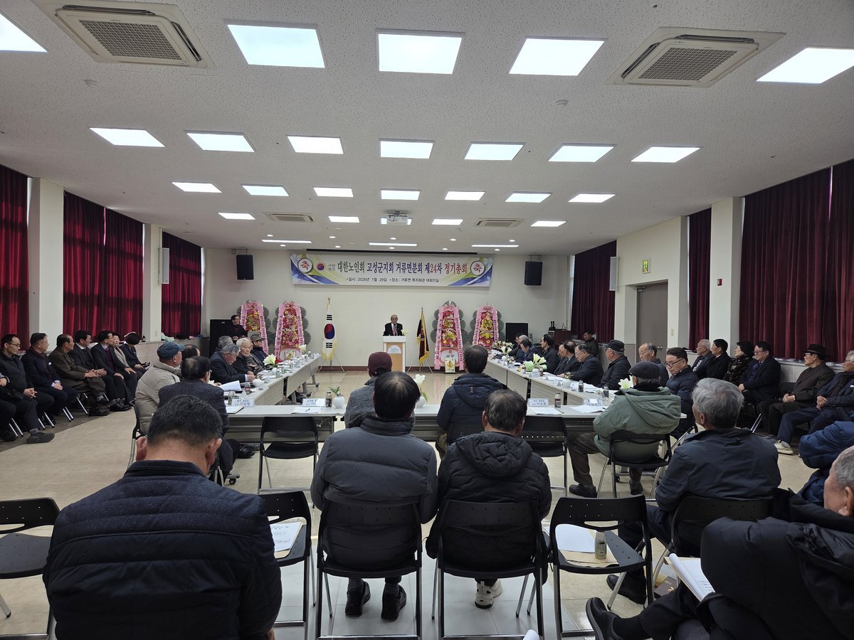 [아시아월드뉴스] 대한노인회 고성군지회 거류면분회는 1월 29일 거류면복지회관 대강당에서 26개 경로당 회장과 총무, 최종림 대한노인회 고성군 지회장 등 70여명이 참석한 가운데 2026년 정기총회를 개최했다.