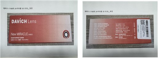[아시아월드뉴스] 식품의약품안전처는 의료기기제조업체인 ‘디케이메디비젼’에서 제조한 ‘DAVICH LENS 3DAY COLOR’ 등 매일착용소프트콘택트렌즈 중 아래 16개 모델에 대해 판매를 중단하고 회수 조치했다고 밝혔다.