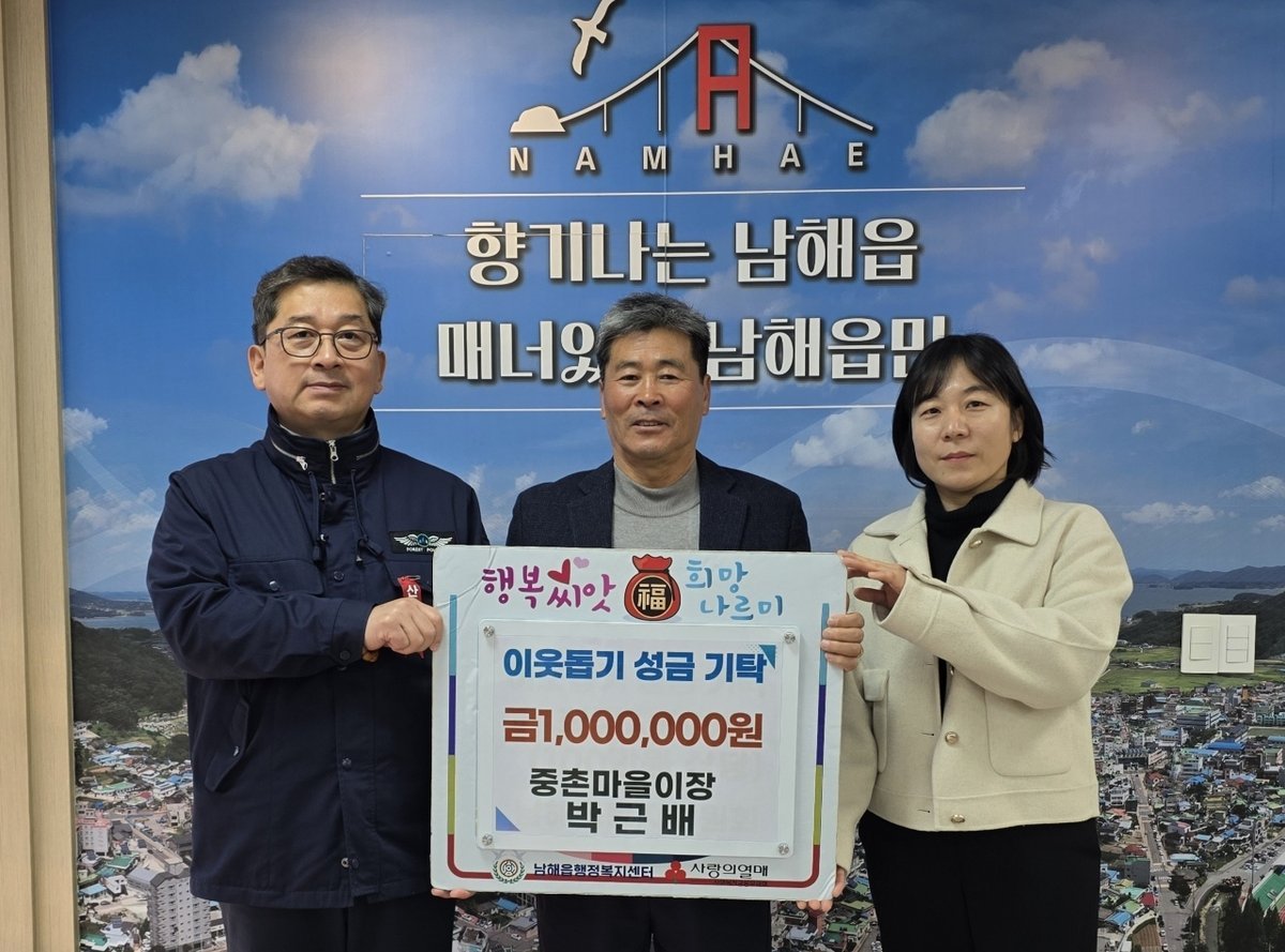 [아시아월드뉴스] 남해읍행정복지센터는 지난 1월 29일 지역 내 어려운 이웃을 돕기 위해 박근배 중촌마을이장이 이웃돕기 성금 100만원을 기탁했다고 밝혔다.