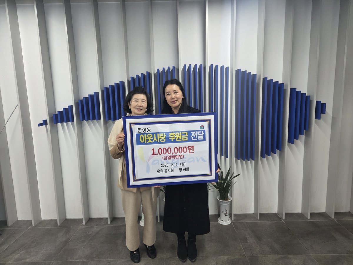 [아시아월드뉴스] 숲속유치원 양성희 원장이 지난 2일 설 명절을 맞아 도움이 필요한 이웃을 위해 성금 100만원을 삼성동에 기탁했다.