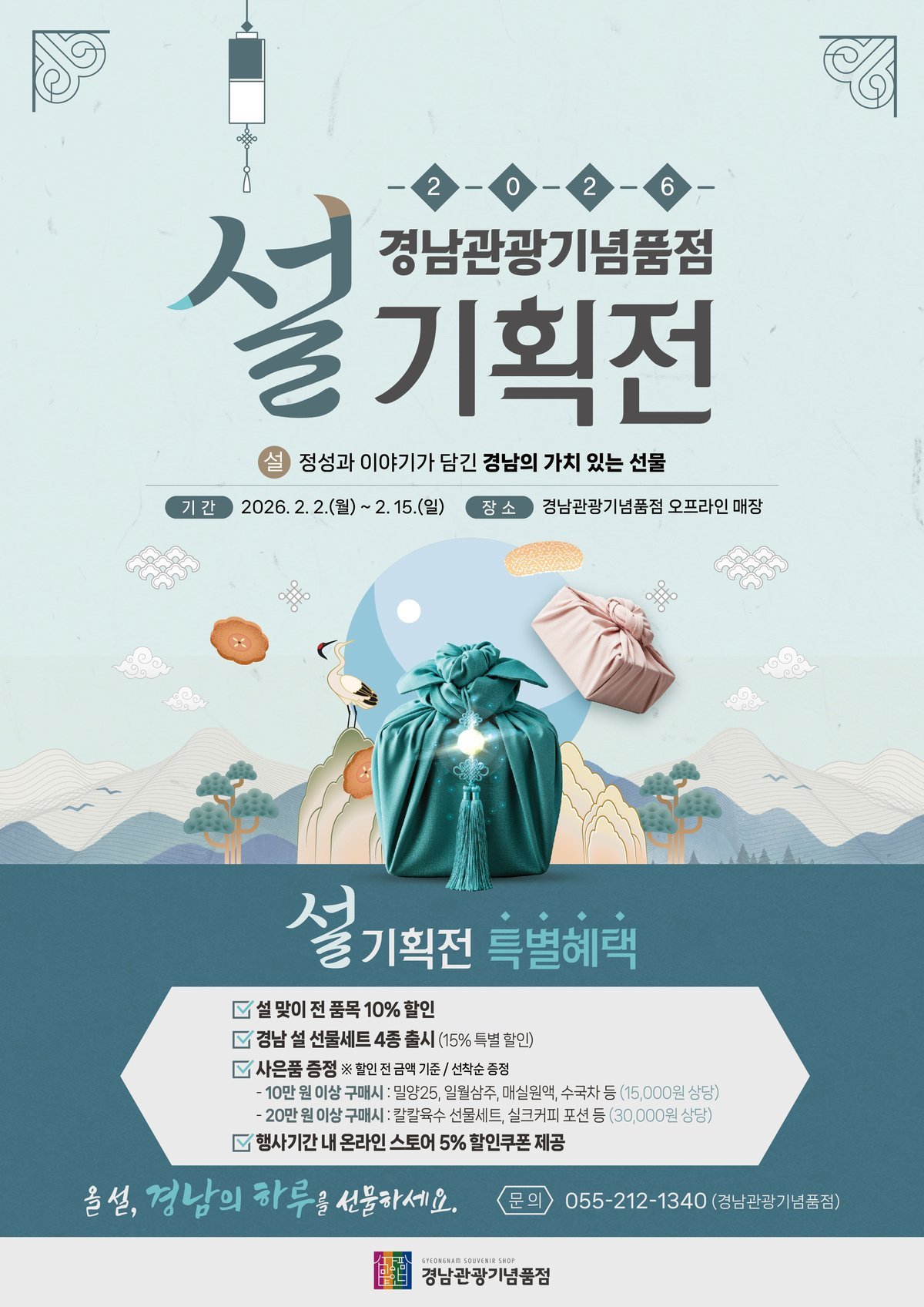 [아시아월드뉴스] 경상남도는 설 명절을 맞아 경남관광재단 주관으로 ‘경남관광기념품점 설 기획전’을 오는 2월 2일부터 15일까지 운영한다고 밝혔다.