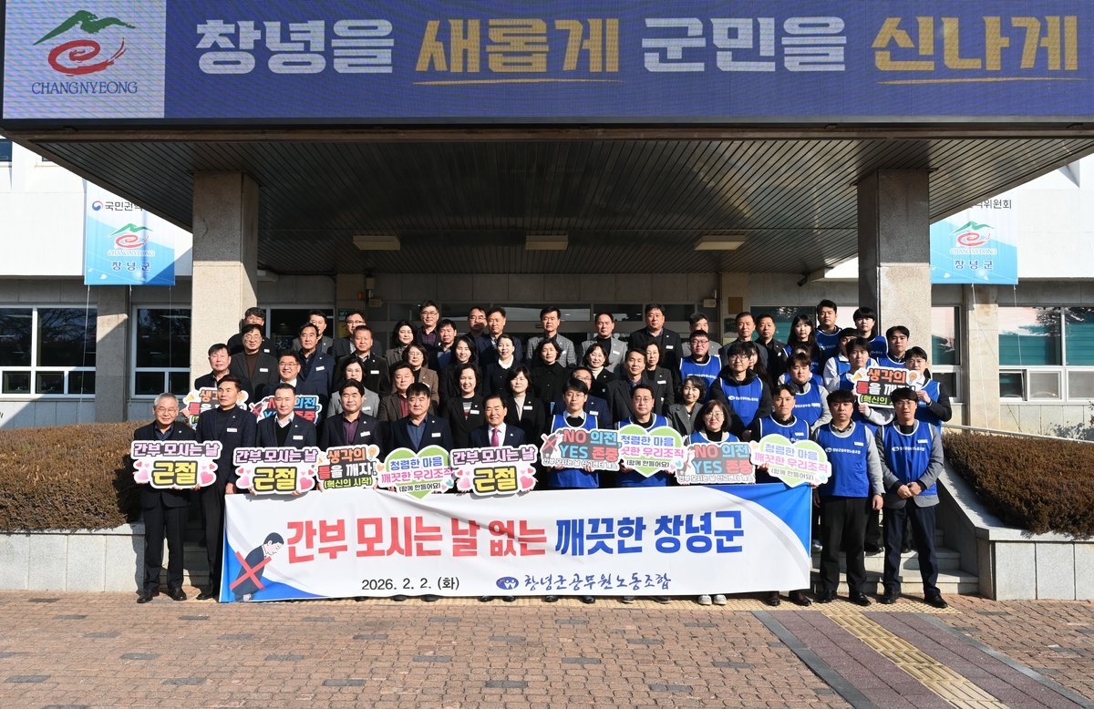 노동조합은 청사 앞에서 '간부 모시는 날 없는 깨끗한 창녕군'문구가 담긴 플래카드를 들고 캠페인을 진행했으며 성낙인 군수를 비롯한 간부 공무원들이 참여해 '간부 모시는 날'근절에 동참했다.