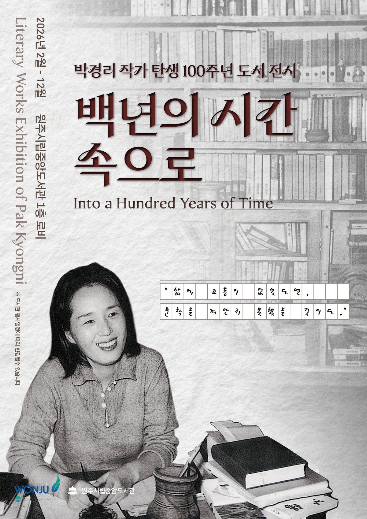 [아시아월드뉴스] 원주시립중앙도서관은 한국 문학을 대표하는 소설가 박경리의 탄생 100주년을 기념해 도서 전시 ‘백년의 시간 속으로’를 운영한다.