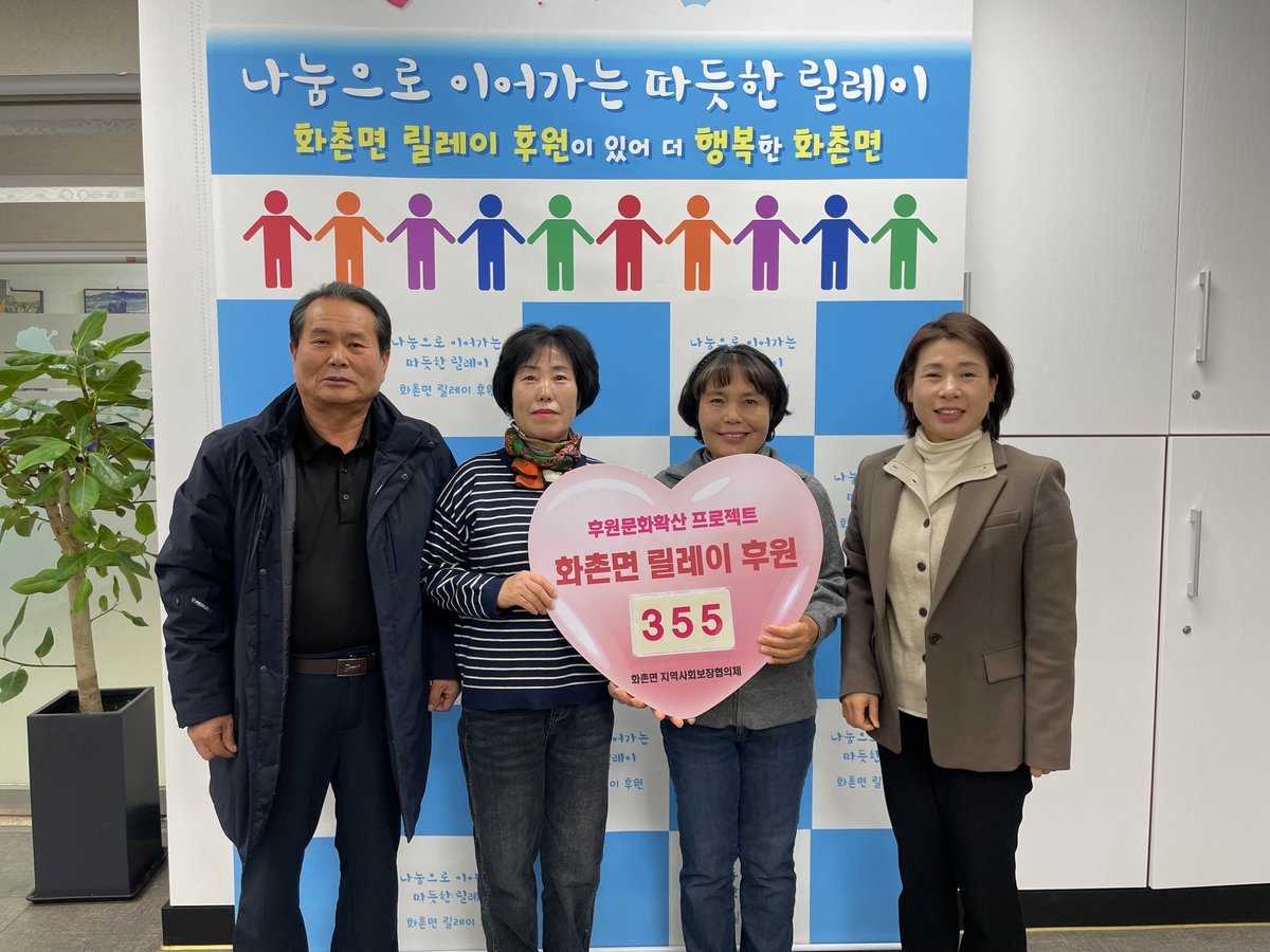 화촌면 릴레이 후원은 주민과 단체, 기관이 자발적으로 참여하는 나눔 운동으로 지역사회에 상생과 연대의 문화를 확산시키며 따뜻한 화촌면을 만들어가고 있다.