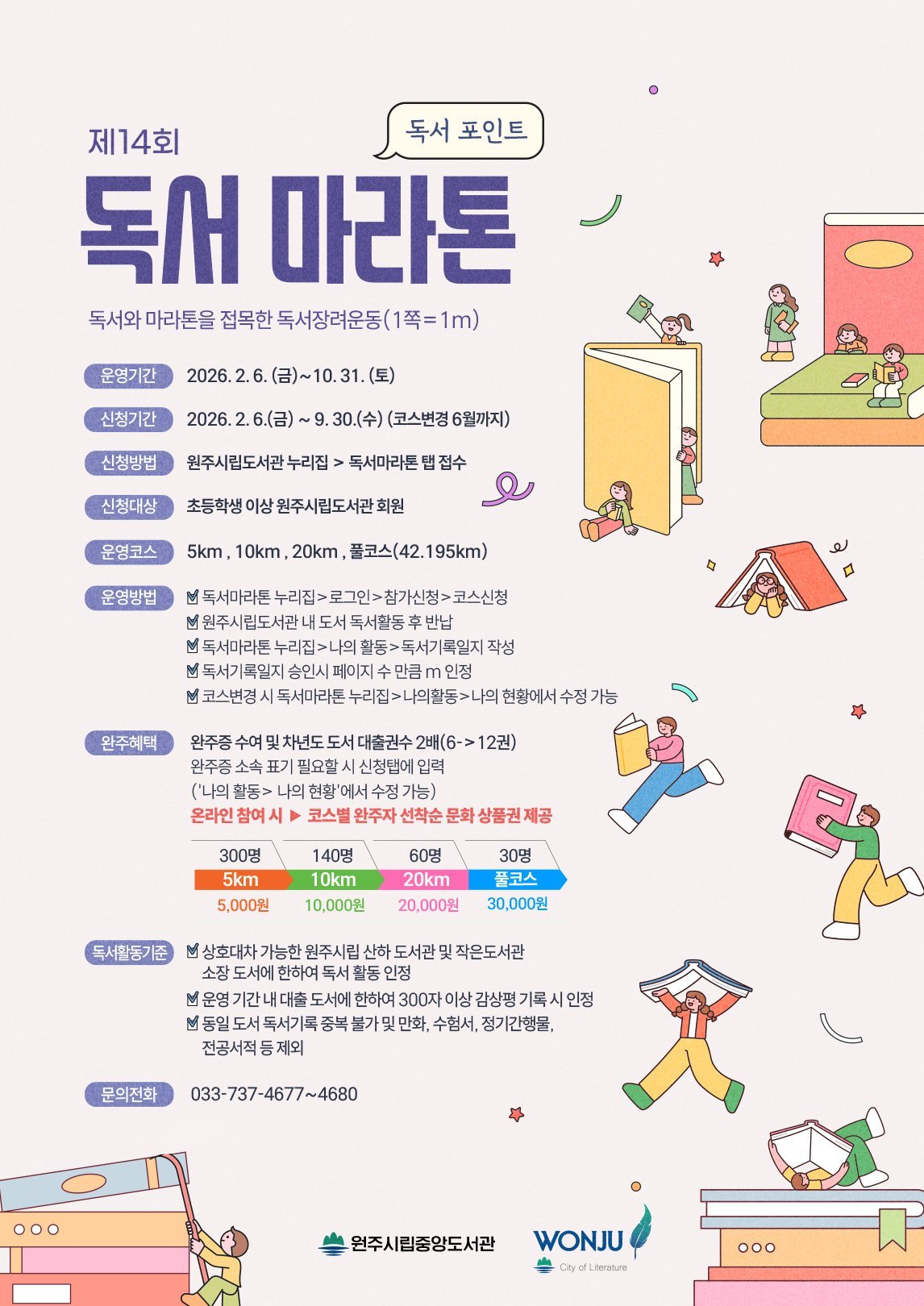 [아시아월드뉴스] 원주시립중앙도서관은 이달 6일부터 제14회 원주시 독서마라톤 참가자를 모집한다.