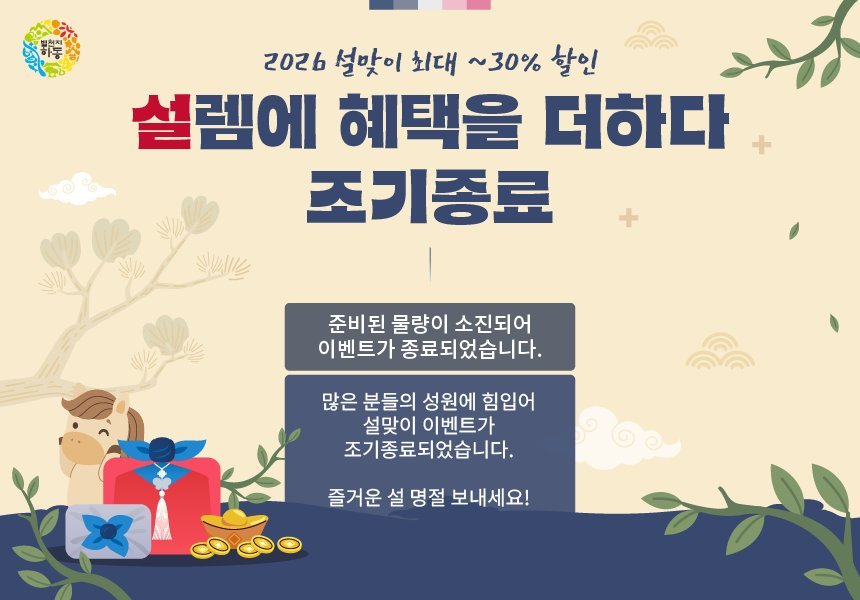 [아시아월드뉴스] ‘별천지하동쇼핑몰’에서 설 명절을 맞아 진행한 할인 행사가 소비자들의 폭발적인 반응 속에 준비된 물량을 모두 소진하며 조기 종료됐다.