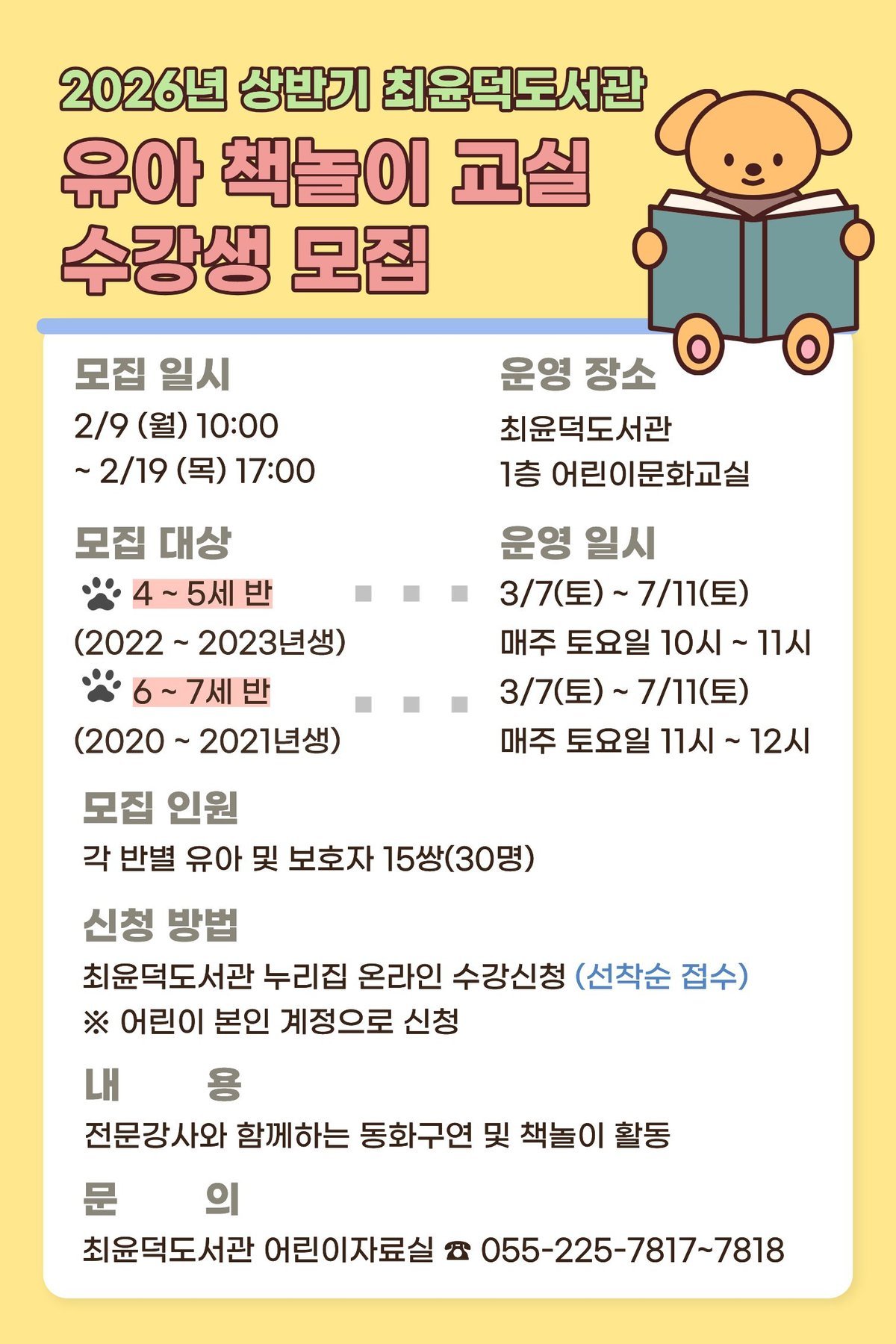 기타 자세한 사항은 누리집 공지사항을 확인하거나 최윤덕도서관 어린이자료실로 문의하면 된다.