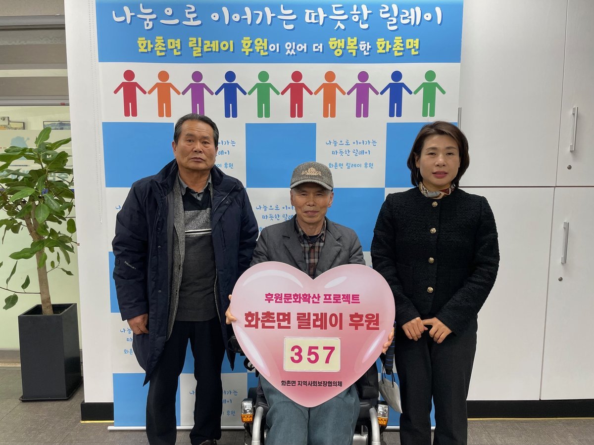이병길 씨는 2월 9일 오전 10시 화촌면 행정복지센터를 방문해 10번째 화촌면 릴레이 후원금을 전달했다.