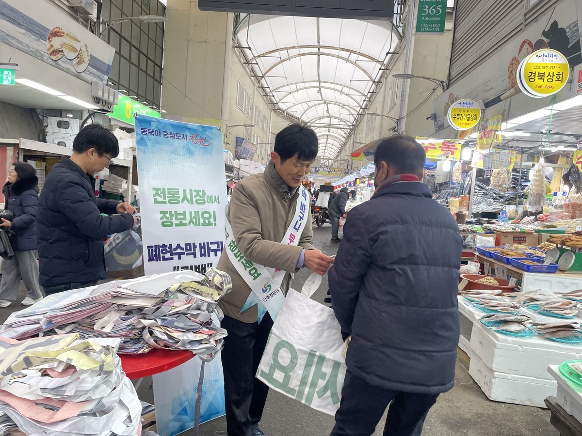[아시아월드뉴스] 창원특례시는 지난 10일 마산어시장 입구에서 폐현수막 바구니 나눔 행사를 실시했다고 밝혔다.