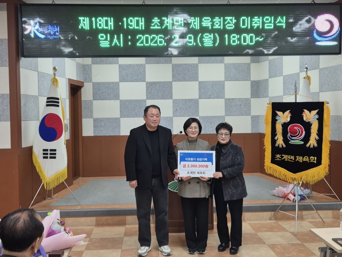 차복술 초계면장은 "초계면 체육회의 따뜻한 나눔과 지역 사랑에 감사드린다"며 "초계면 체육회가 앞으로도 지역 체육 발전은 물론 주민 화합의 구심점 역할을 하길 기대한다"고 밝혔다.