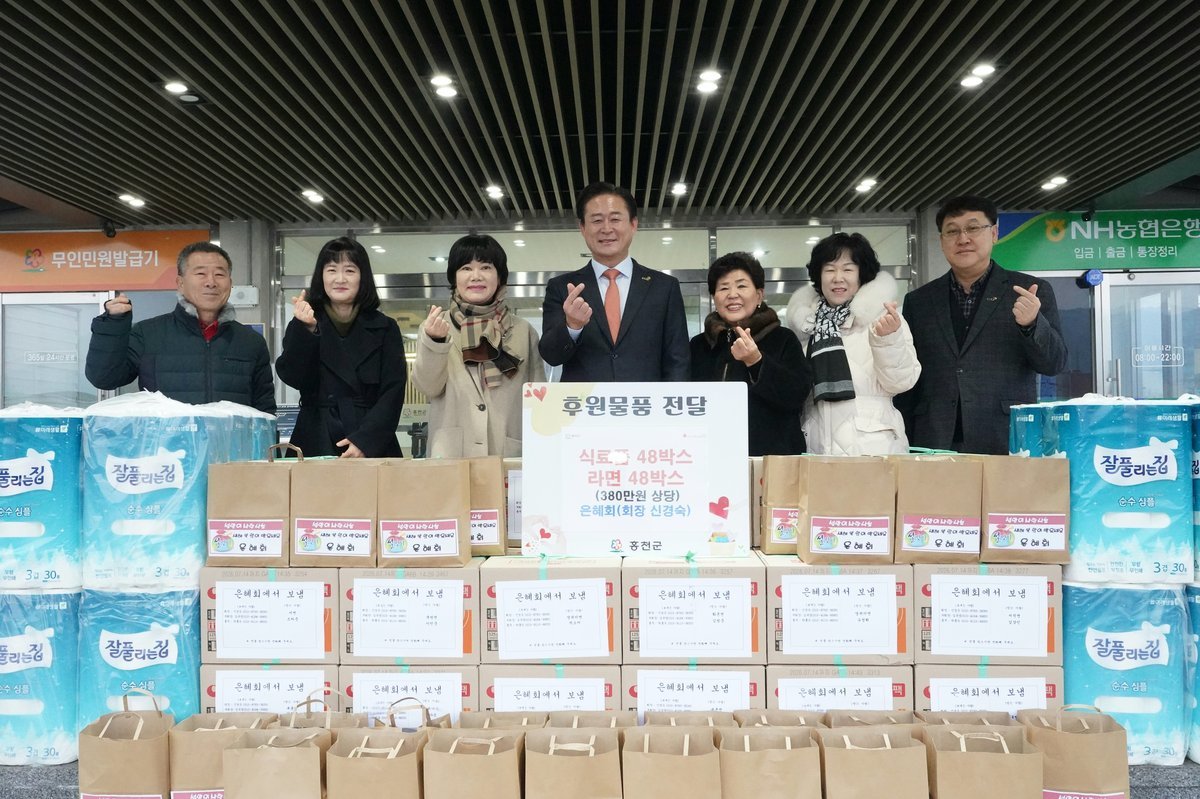 [아시아월드뉴스] 홍천군에서 오랜 기간 봉사활동을 이어오고 있는 은혜회는 2월 11일 홍천군청을 방문해 관내 취약계층 아동 가정을 지원하기 위한 생필품을 기탁했다.