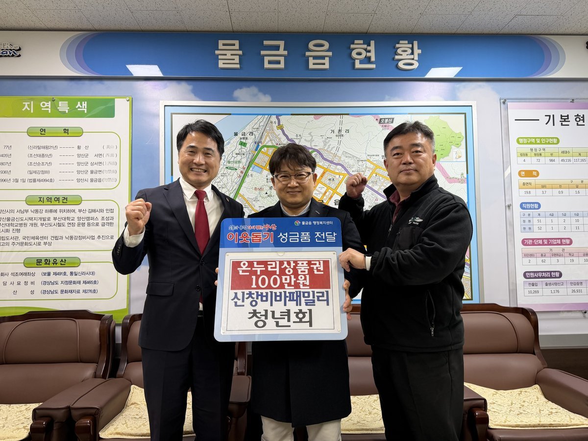 심주석 물금읍장은 “청년회가 기부한 온누리상품권은 저소득층의 생활 안정을 돕는 동시에 지역 경제에도 활력을 줄 것”이라며 감사를 표했다.