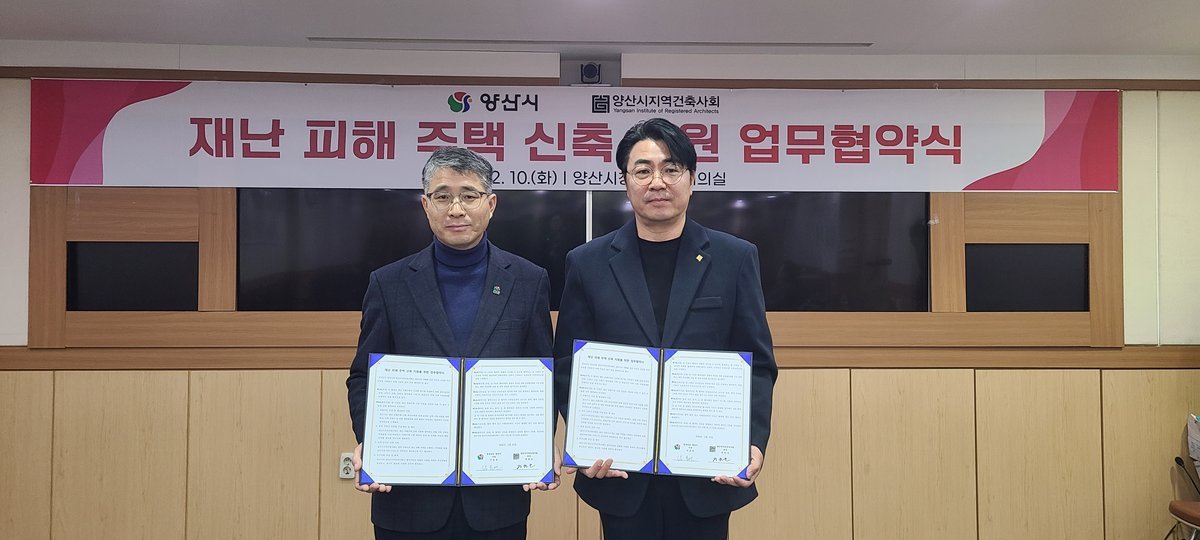 협약에 따라 양산시는 재난피해주택 신축 대상자 안내 및 행정 지원을 담당하고 양산시지역건축사회는 주택 설계 및 감리비를 50% 감면해 제공함으로써 피해 주민들이 보다 안전하고 신속하게 주거 환경을 회복할 수 있도록 협력하게 된다.